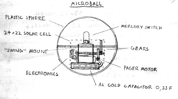 oscillator with the on time controlled by a photodiode. This should give the ball some phototropic behaviour. The gearbox is of the